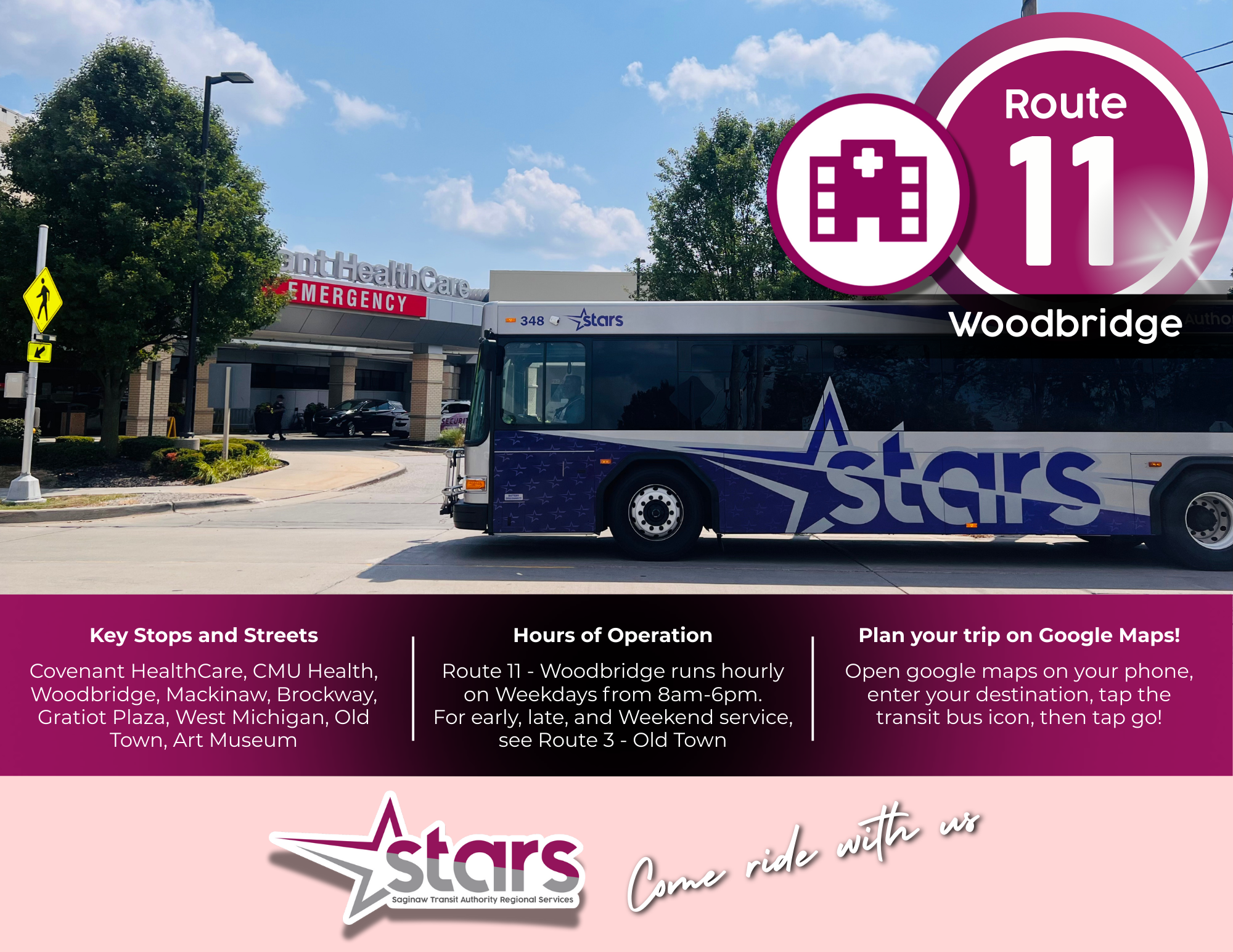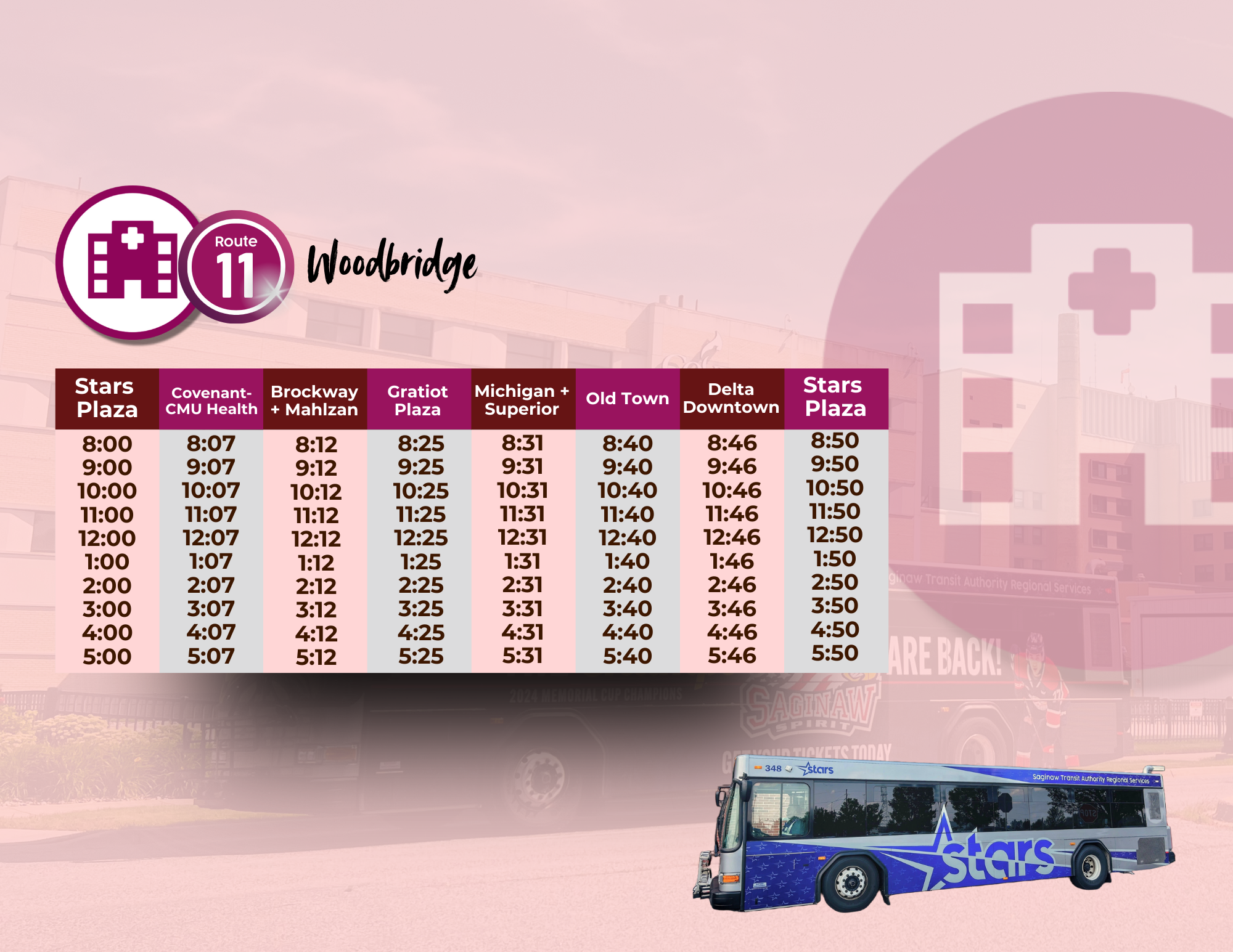 Primary Routes 1 State Street 2 North BV 3 Old Town 4 South BV 5 Dixie Genesee 6 Fashion Square 7 East Riverfront 8 Jefferson 9 Cardinal Square 11 Woodbridge Non-Peak Route Design Route 11 Woodbridge Interactive Map - 11 WoodbridgeBrochure – 11 Woodbridge Route 11 Trifold