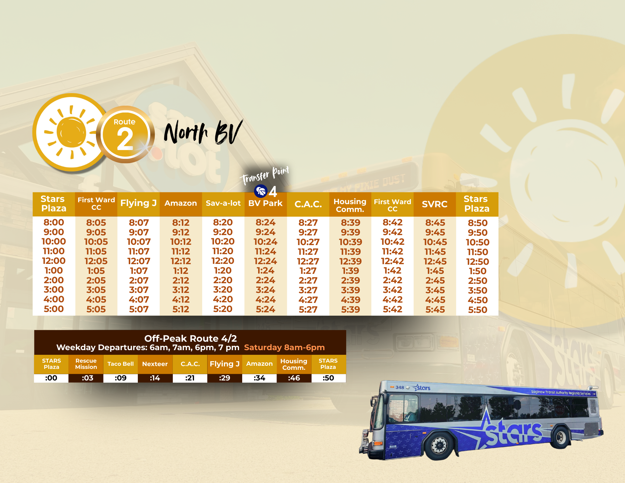 Primary Routes 1 State Street 2 North BV 3 Old Town 4 South BV 5 Dixie Genesee 6 Fashion Square 7 East Riverfront 8 Jefferson 9 Cardinal Square 11 Woodbridge Non-Peak Route Design Route 2 North BV Interactive Map - 2 North BVInteractive Map - 4/2 CombinedBrochure – 2 North BV STARS Route 2 Pamphlet 1 file(s) 16.00 KB Download