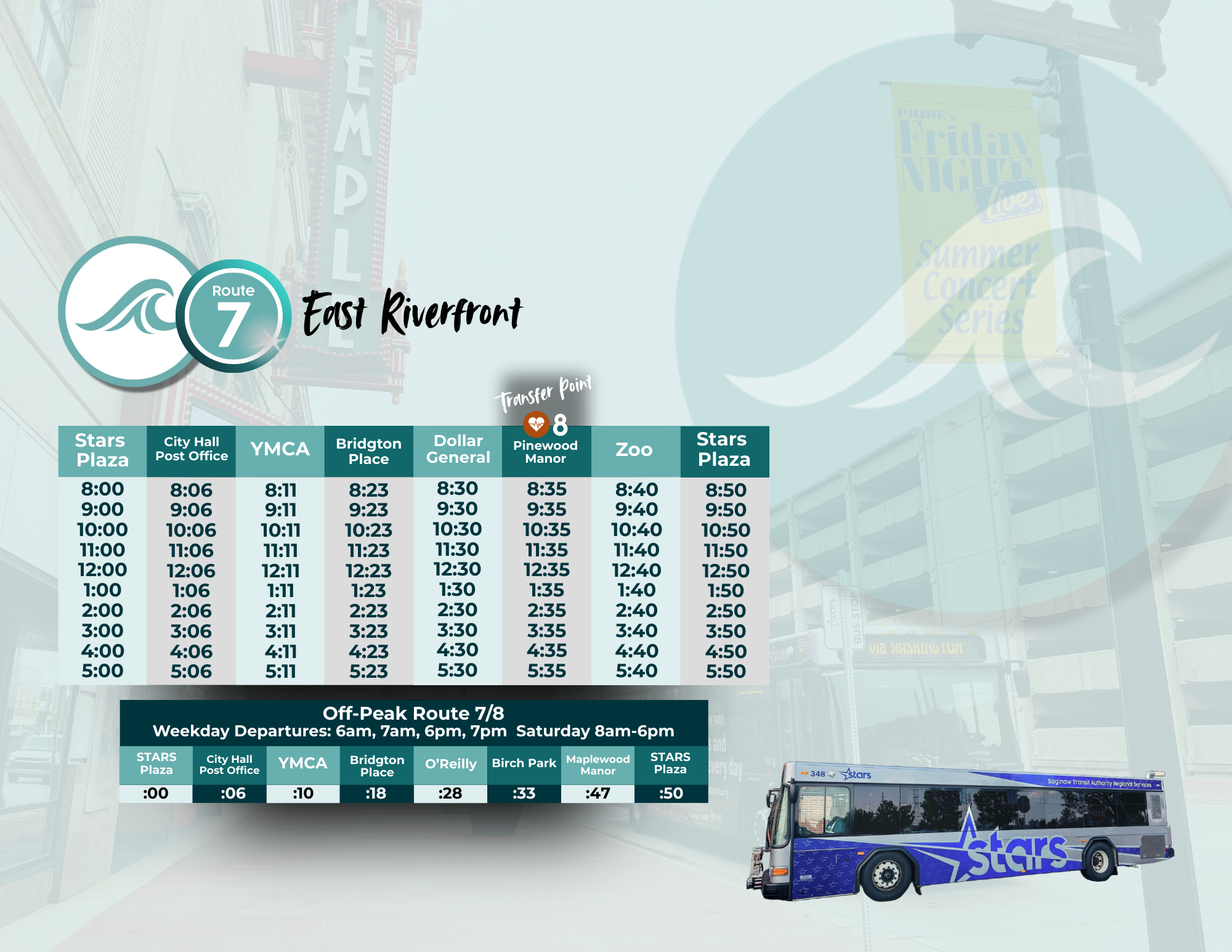 Primary Routes 1 State Street 2 North BV 3 Old Town 4 South BV 5 Dixie Genesee 6 Fashion Square 7 East Riverfront 8 Jefferson 9 Cardinal Square 11 Woodbridge Non-Peak Route Design Route 7 East Riverfront Interactive Map - 7 East RiverfrontInteractive Map - 7/8 CombinedBrochure – 7 East Riverfront Route 7 Trifold